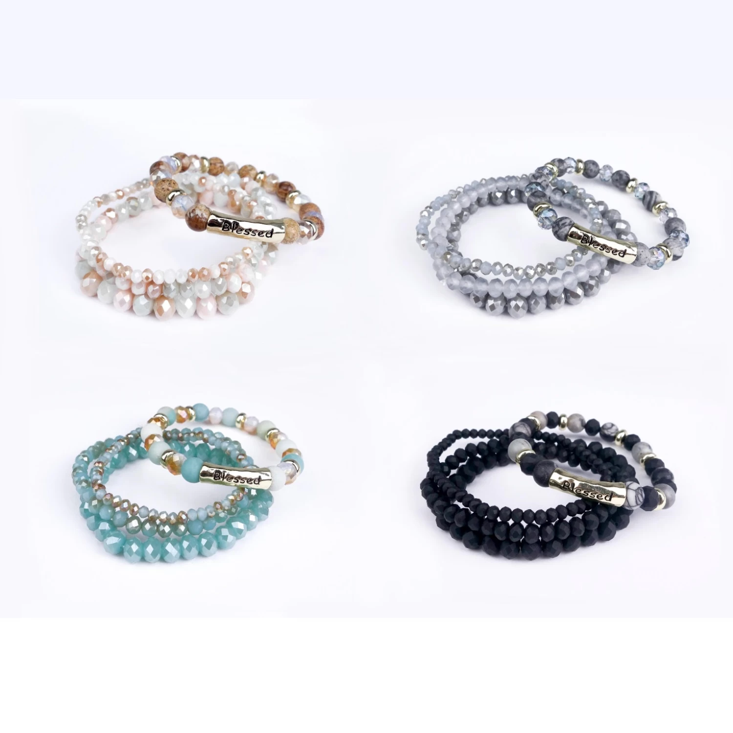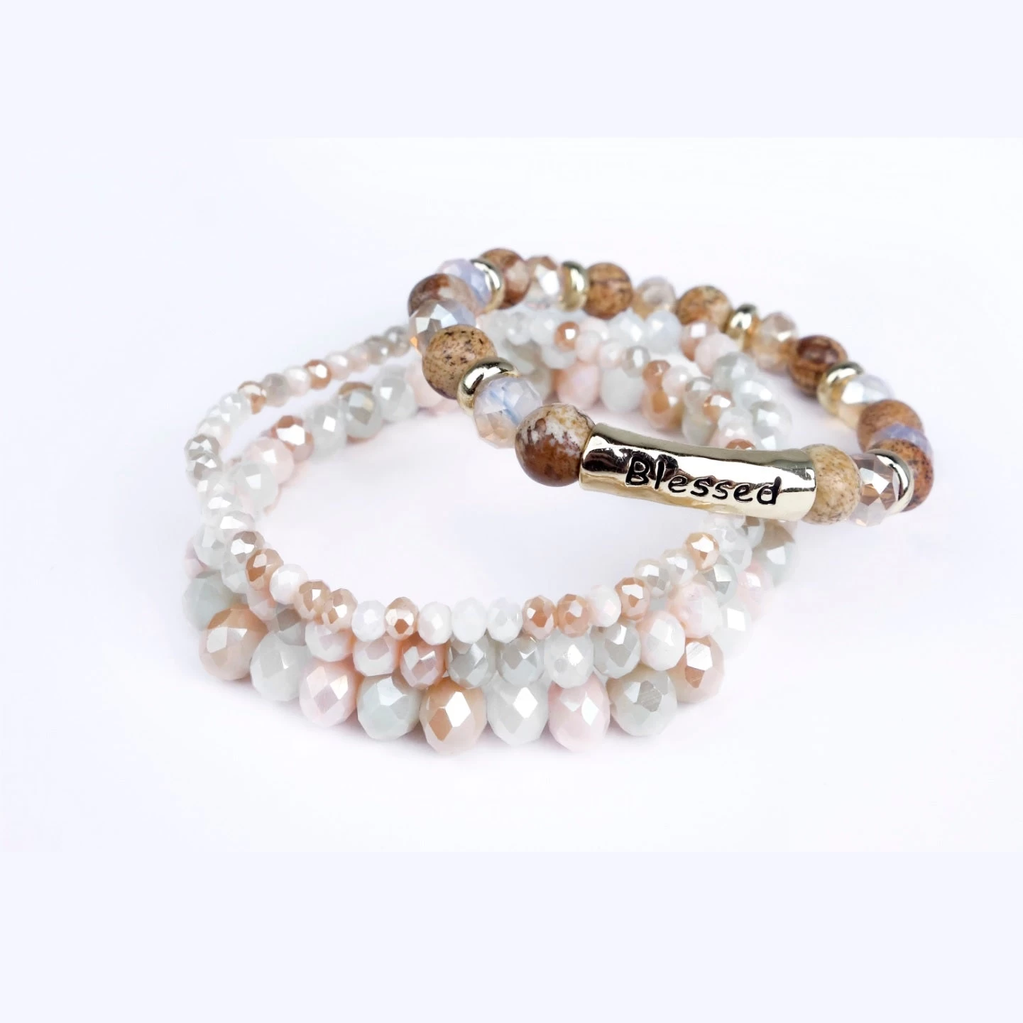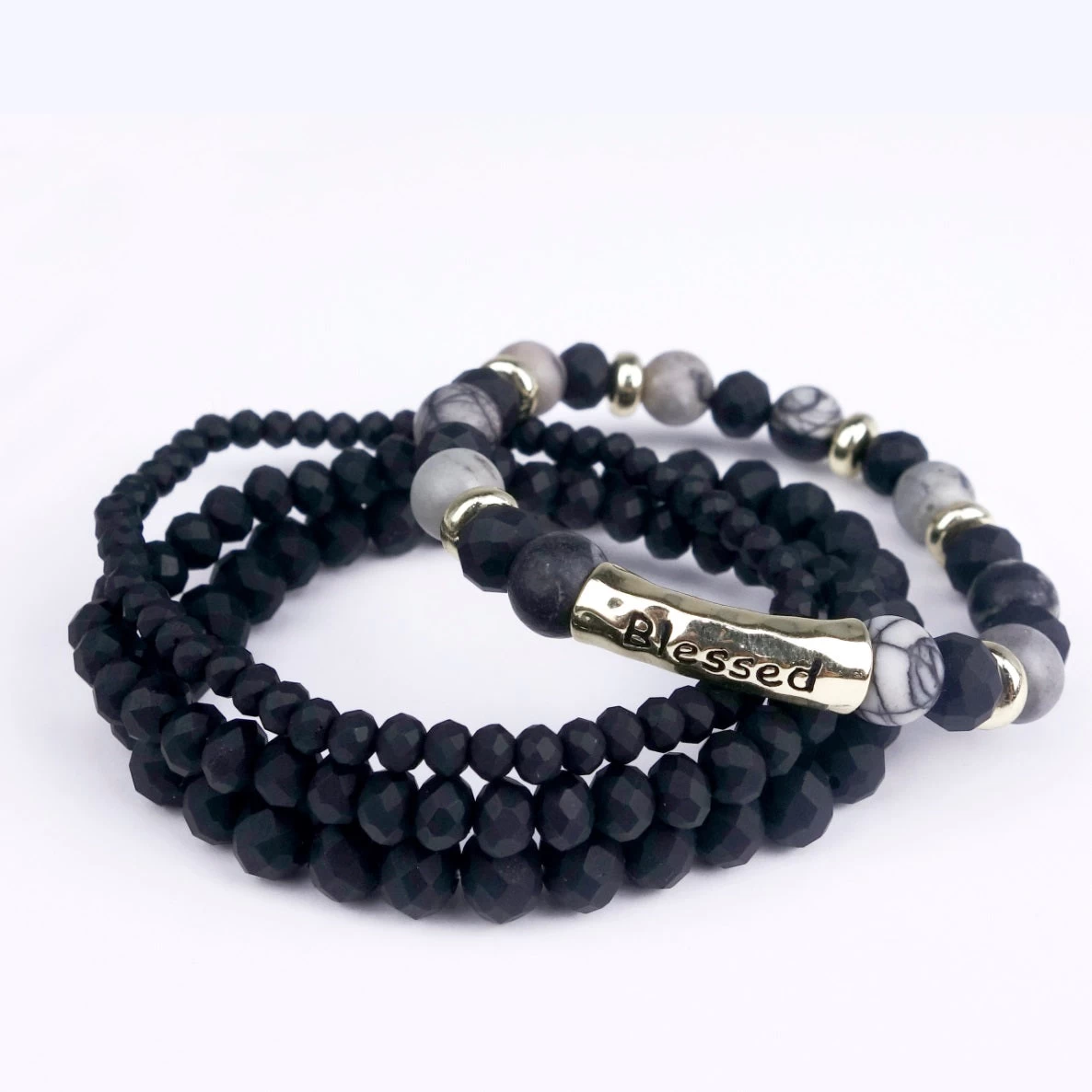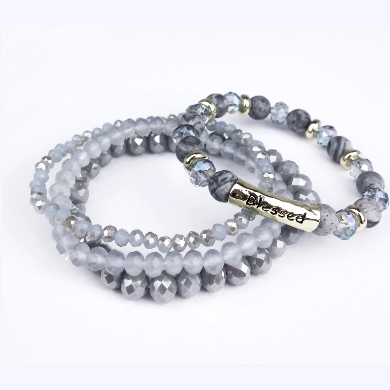 This is a stunning stacked bracelet set that reminds us of our many blessings!