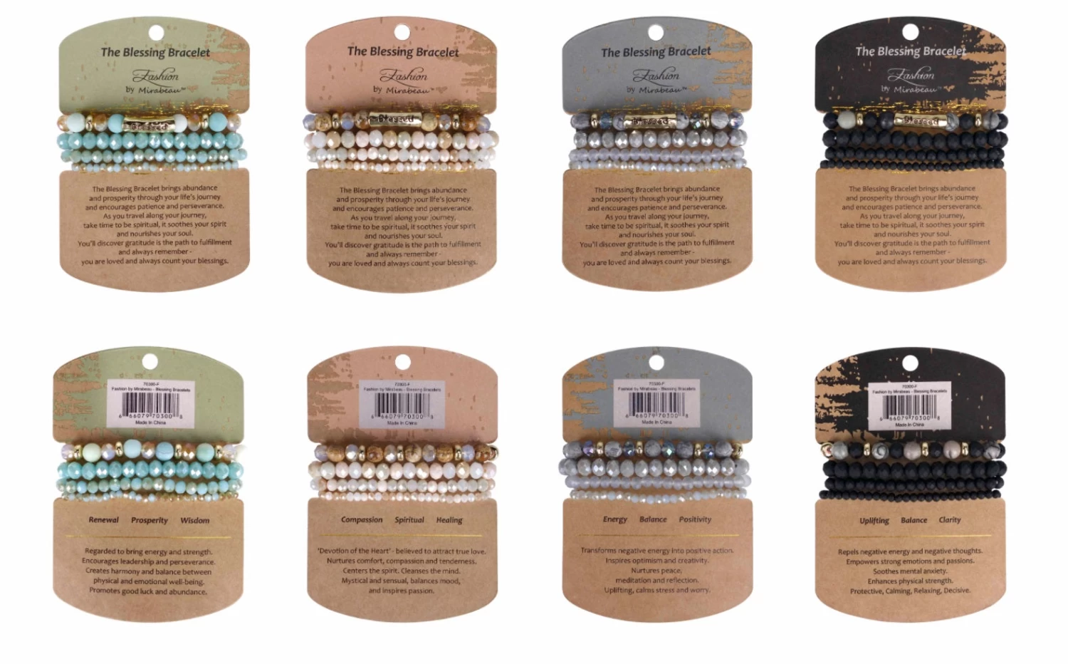 Message on the card reads: The Blessing Bracelet brings abundance and prosperity through your life’s journey and encourages patience and perseverance. As you travel along your journey, take time to be spiritual, it soothes your spirit and nourishes your soul. You’ll discover gratitude is the path to fulfillment and always remember – you are loved and always count your blessings.