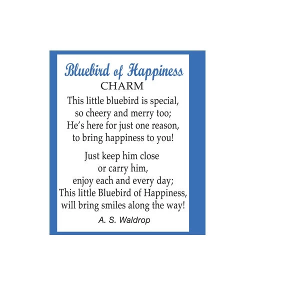 This little bluebird is special, so cheery and merry too. He’s here for just one reason, to bring happiness to you! Just keep him close or carry him. Enjoy each and every day. This little bluebird of happiness will bring smiles along the way!