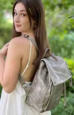 Chloe Butter Vegan Leather Flap Top Draw String Backpack Gray