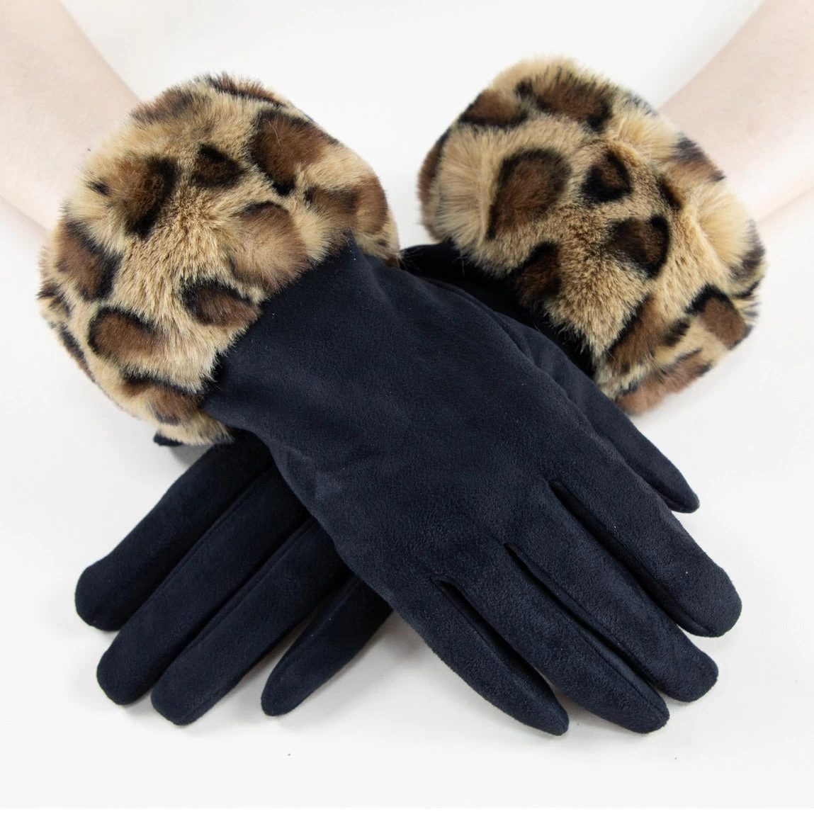 Faux Fur Leopard Cuff Black Gloves BUY 1 GET 1 FREE