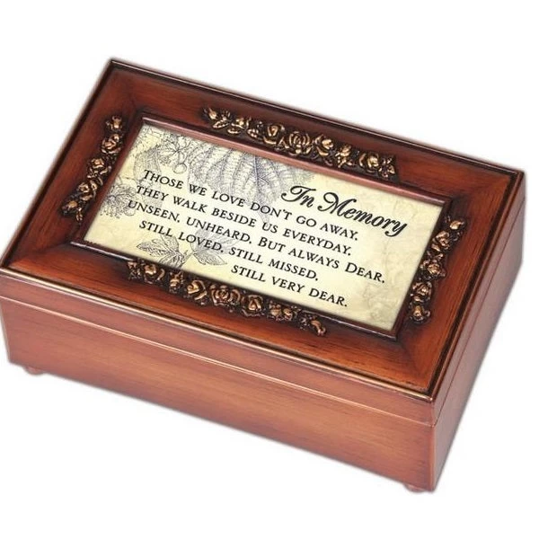 Comfort the grieving soul with this “In memory” petite music keepsake box. It plays the melodic tune “Wind Beneath My Wings.” Keep the precious tiny trinkets in memory of the beloved one in this music box. This music box features beautiful sentiments and will bring back beautiful memories of the special person often. It’s the perfect gift to give for the priceless treasured memories of a loved one.