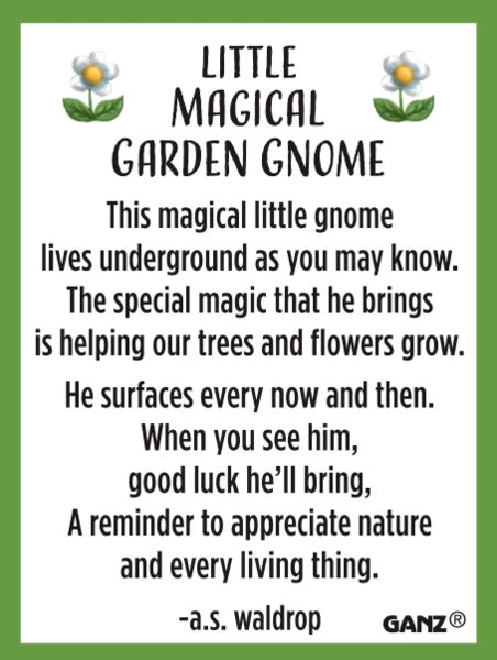 This magical little gnome lives underground as you may know. The special magic that he brings is helping our trees and flowers grow. He surfaces every now and then. When you see him, good luck he’ll bring, a reminder to appreciate nature and every living thing.