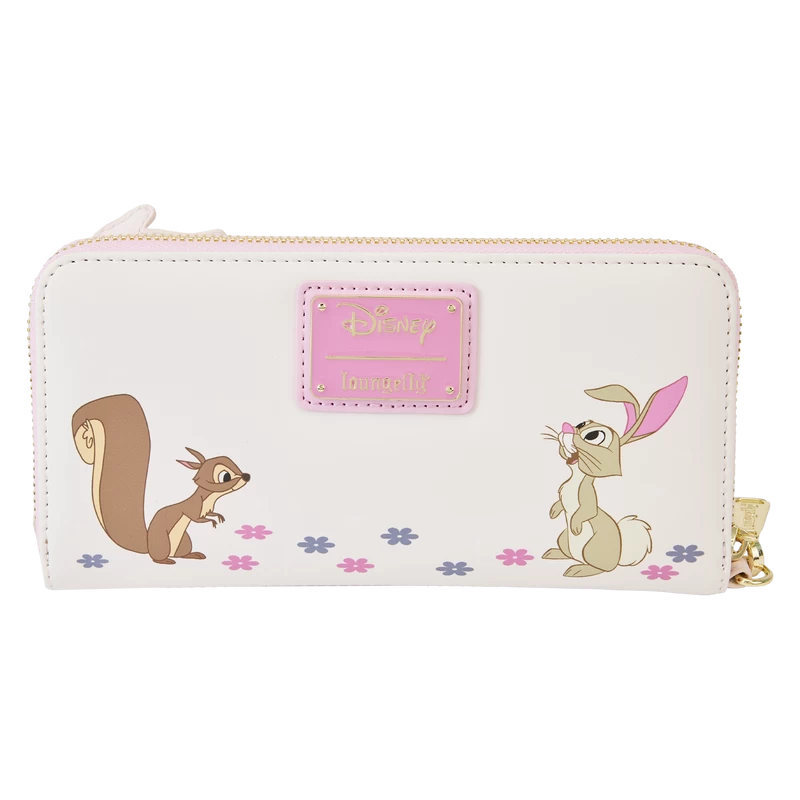 Dream up enchanting adventures with our Loungefly Disney Sleeping Beauty Princess Lenticular Wristlet Wallet. On the front, applique woodland creatures, dressed up as a royal prince, look into a window view of Aurora with Prince Phillip. In an alternate lenticular view, Aurora’s with the woodland creatures, telling them all about her dream prince. Debossed flowers and more woodland creatures frame the window of this pink wallet, and on the back, a squirrel and a rabbit make an encore appearance, surrounded by flowers. Inside, you’ll find 8 slots for holding cards and 1 clear slot for displaying your ID. An interior zipper pocket allows for extra room in this larger-sized wristlet wallet. A die-cut shape of a flower, on the clear ID slot, adds a charming touch. Make a dreamy entrance wherever you go with this stylish vision of a wallet.