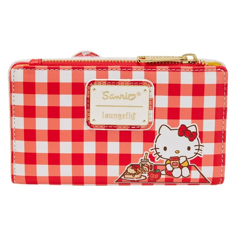 The perfect picnic is all squared away and topped with a bow! Take along our Loungefly Sanrio® Hello Kitty Gingham Cosplay Flap Wallet to share smiles and friendship wherever you go. This red-and-white-checkered wallet features Hello Kitty’s adorable face in cuddly plush and embroidered detail on the front. Her matching gingham bow finishes the look in supercute style. On the back, Hello Kitty has spread out a picnic blanket and is enjoying all kinds of treats. Inside, you’ll find 4 slots on either side for carrying cards and 1 clear slot for displaying your ID. A die-cut shape of a bow adds a signature Hello Kitty touch. It’s the perfect accessory for meeting up with friends for a special outing—or for turning everyday journeys into cheerful adventures.
