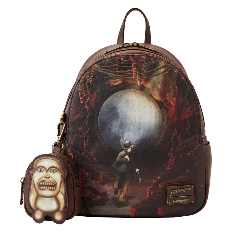 Rock a fashionable find you’re sure to treasure! Make a stylish escape with our Loungefly Indiana Jones™ Raiders of the Lost Ark Mini Backpack with Coin Purse. This mini backpack and detachable coin purse provide pop-culture style and convenience all rolled into one. The incredible moment when Indiana Jones runs from a boulder while clutching the Golden Idol plays out on the front of the backpack. This scene unfolds against a debossed background with embossed vines hanging above. On the back, you’ll find a gold foil nameplate with Indiana Jones’ name and legacy “engraved” on the surface. A detachable coin purse of the Golden Idol helps keep your valuables close by and secure. It’s the perfect accessory for exploring fun new places—or turning everyday outings into memorable adventures.