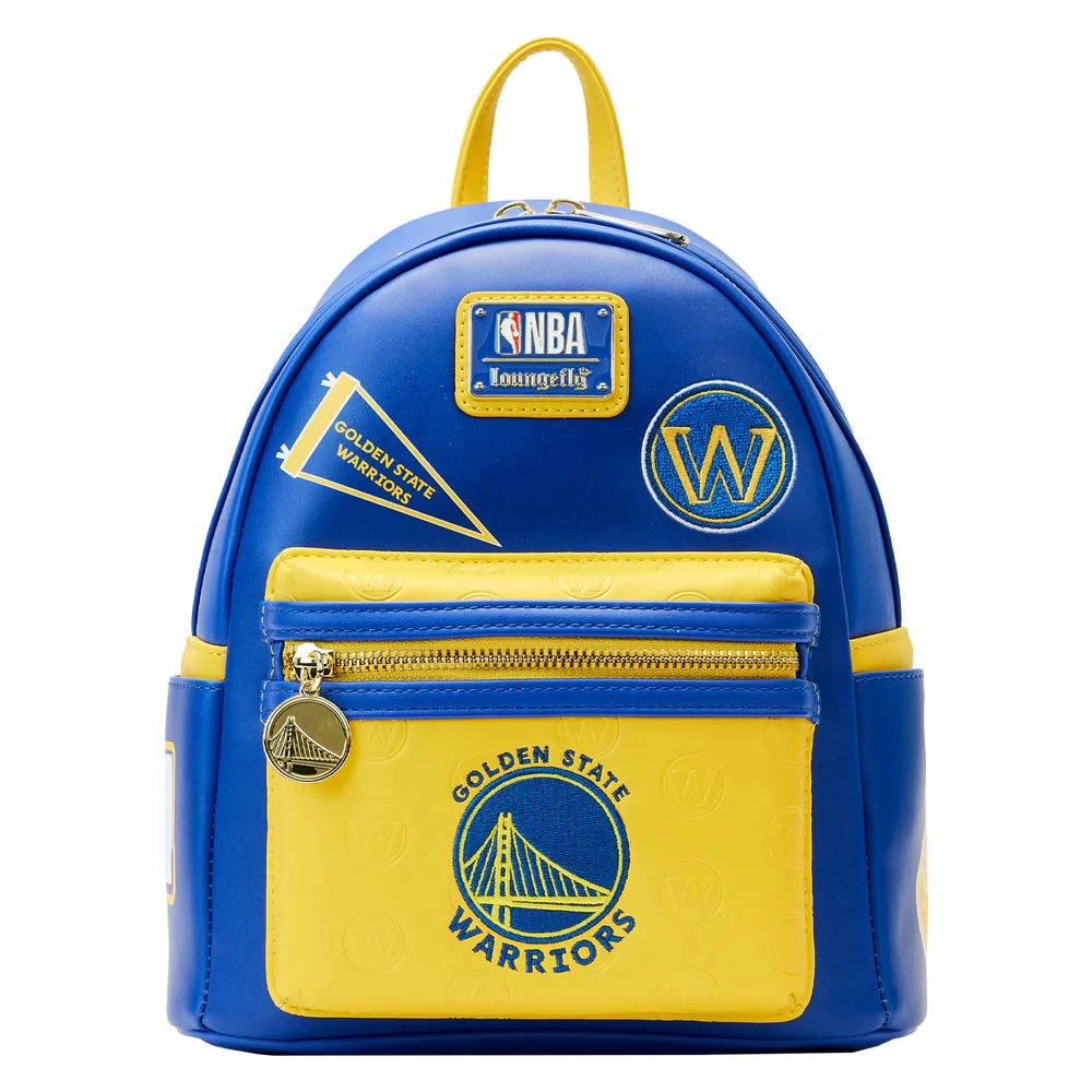 The Loungefly NBA Golden State Warriors Patch Icons Mini Backpack is made of vegan leather (polyurethane). Bag has adjustable shoulder straps and sturdy metal hardware. Additional features include applique, debossed, and printed details. Take note of the coordinating inside lining.