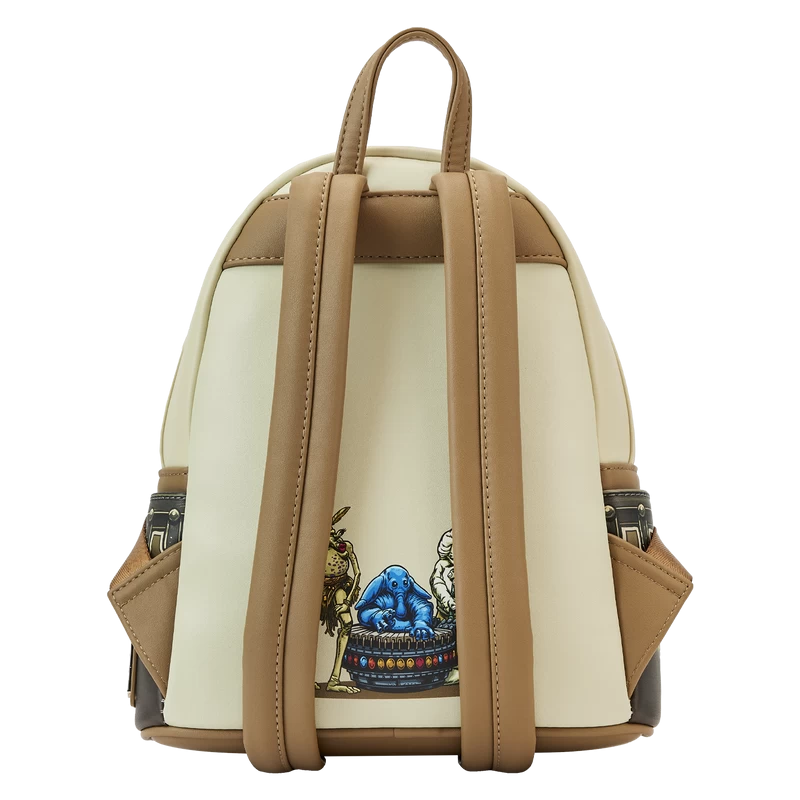The Loungefly Star Wars™: Return Of The Jedi™ Jabba’s Palace Mini Backpack is made of vegan leather (polyurethane). Bag has adjustable shoulder straps, sturdy metal hardware, metal zipper charm, and features: debossed, applique, printed details. Take note of the coordinating inside lining.