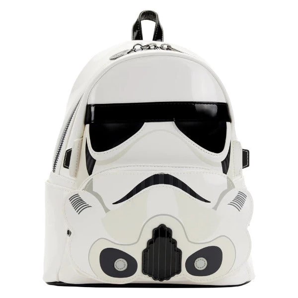 Blast through your day with the help of a Star Wars Stormtrooper with this Stormtrooper Lenticular Cosplay Mini Backpack. The backpack, which includes a zipped front pocket, takes the shape of a Stormtrooper’s white helmet and face. A lenticular screen placed in the eyewear reveals, in an alternate view, Hans Solo, Chewbacca, and Princess Leia. An embroidered Stormtrooper symbol appears on the back.