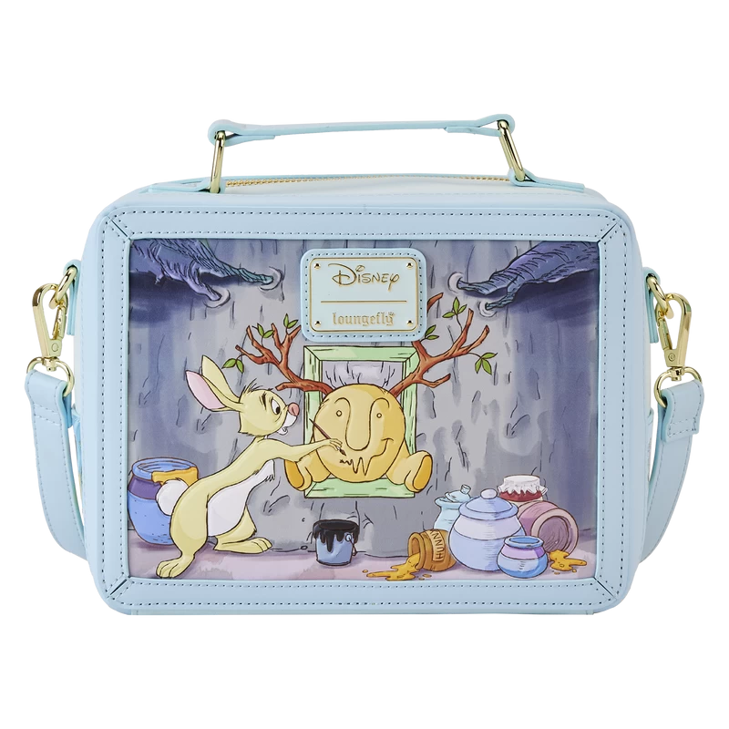 It’s picnic time in the Hundred Acre Wood! Pack your bags for adventure with the Loungefly Winnie the Pooh Lunchbox Crossbody Bag, which takes the form of a rectangular lunchbox. The bag’s front and back panels depict scenes from Rabbit’s house where Pooh Bear finds himself in a sticky situation. The sides show Pooh, Piglet, and Tigger as they experience a blustery day. With plenty of room to carry your favorite snacks, this accessory makes a whimsical addition to any outfit.