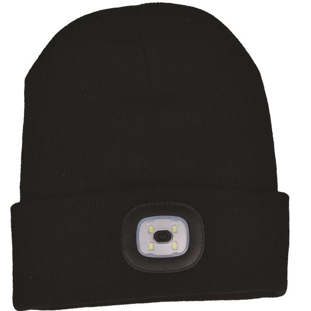 - Light-up LED beanie features three brightness settings and a rechargeable light.