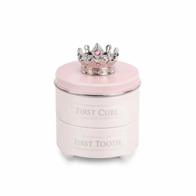 Pink First Tooth & Curl Keepsake Box With Princess Crown