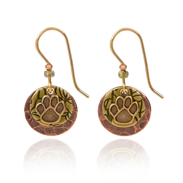 Silver Forest Earrings Gold Paw Print On Layered Rounds