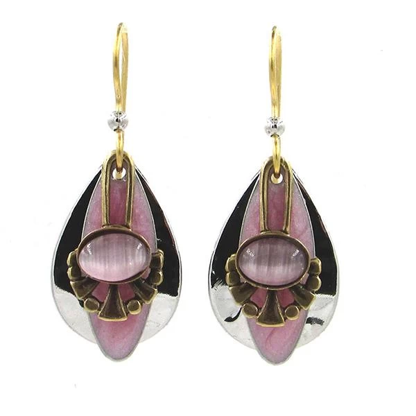 Silver Forest Earrings Gold Pink Stone On Black White Teardrop