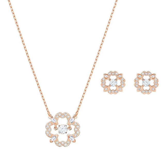 Swarovski Sparkling Dance Flower Rose Gold-Tone Necklace And Earring Set